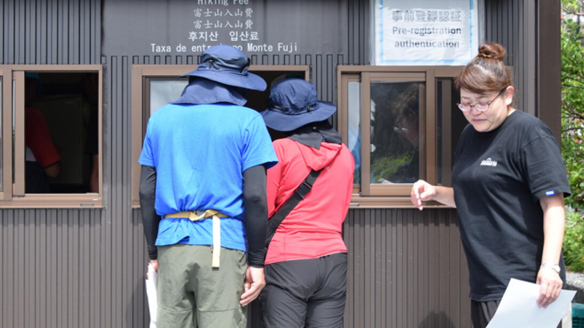 At the fifth station on the Fujinomiya trail, one of the three trails on the Shizuoka side, staff checked climbers’ QR codes and wristbands, issued after paying the entrance fees.